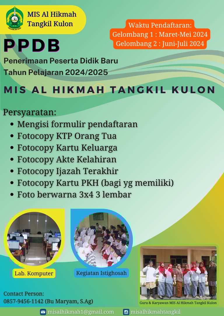 Pendaftaraan Gelombang II Peserta Didik baru MIS Al Hikmah Tangkil Kulon dibuka.